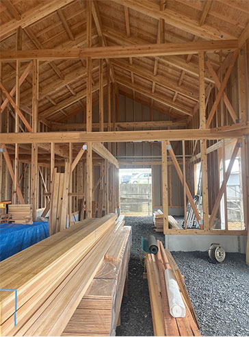 JWGARAGEは、日本伝統の木造工法と流行りのアメリカンガレージ風の外壁を合わせた和洋折衷のローコスト建築物で、